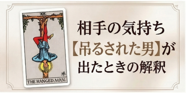 私は過去、「吊られた男」が出て、占い師に「彼は今は動けないけど、準備しています。待ってあげてください」と言われました。