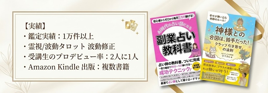 だから私は、「直感がない」「霊感がない」「感覚が使えない」と挫折した人たちを救いたいと思いました。占いは才能ではなく、技術です。再現性のある手順で、誰でも習得できるのです。