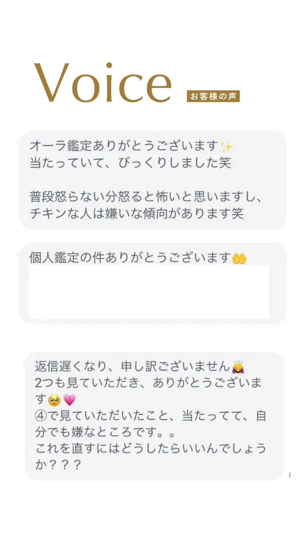 ネガティブが強いと波動がわかりにくいので、あなたにぴったりあった提案を個別でしていきます。